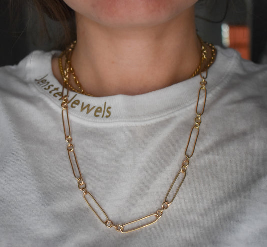 Handmade 14k Yellow Gold Trombone Chain Necklace 20"