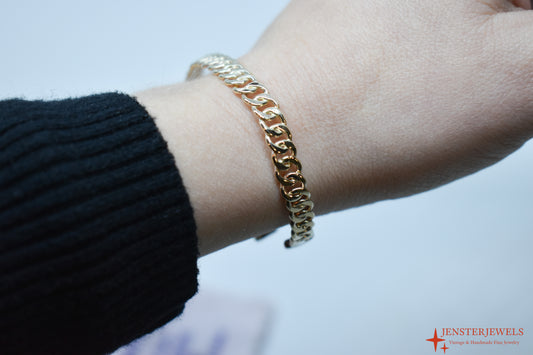 Handmade Solid 14k Yellow Gold Cuban Link Cuff Bracelet
