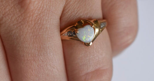 Vintage 10k Yellow Gold Heart Opal and Diamond Ring Size 7