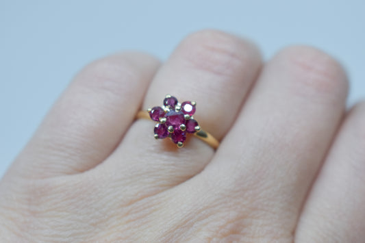 Vintage 14k Yellow Gold Ruby Flower Ring Size 5 3/4