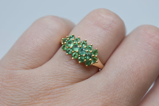 Vintage 14k Yellow Gold Emerald Cluster Ring Size 7 1/4