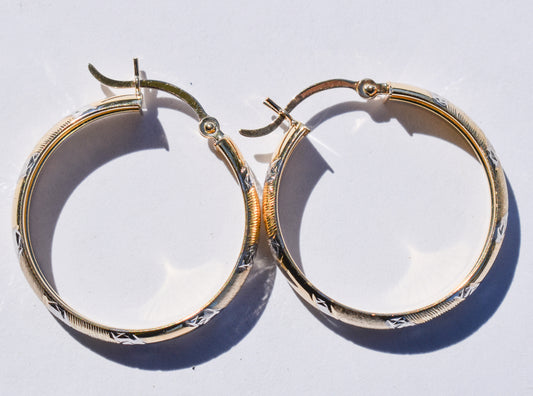 Vintage 14k Yellow Gold Hollow Diamond-Cut Hoop Earrings