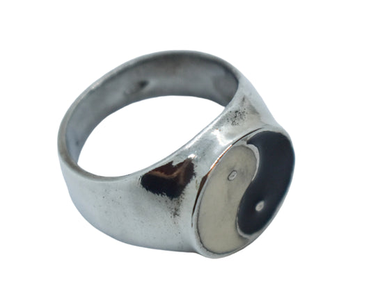Vintage Sterling Silver Enamel Yin and Yang Ring Size 10