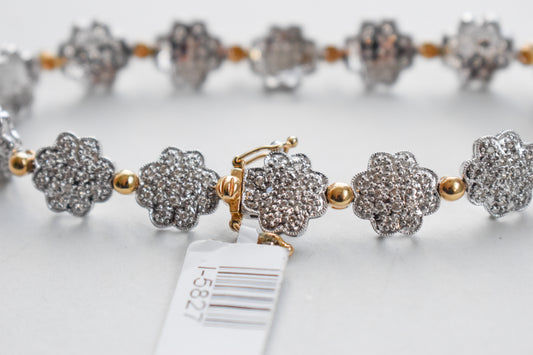 Vintage Estate 14k Two-Tone Gold Diamond Flower Bracelet 7 1/4"