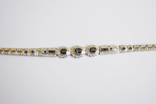 Vintage Estate 14k White Gold Sapphire and Diamond Bracelet 7 3/4"