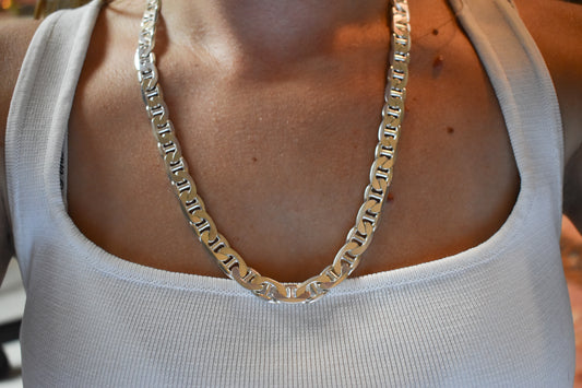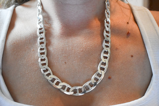 Vintage Sterling Silver Flat Mariner Link Chain Necklace 20"