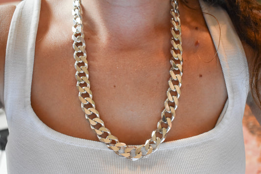 Vintage Sterling Silver Heavy Cuban Curb Link Chain Necklace 22"