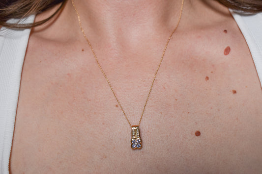 Vintage 14K Yellow Gold Tanzanite and Diamond Pendant on 18" Chain