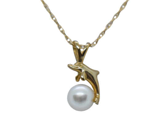 Vintage 14k Yellow Gold Wyland Dolphin Pendant on 18" Dainty Chain