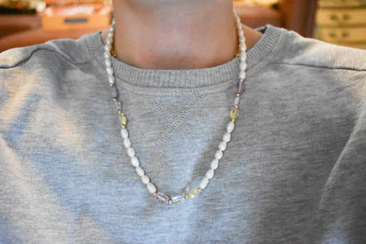 Vintage 14k Yellow Gold Gemstone & Pearl Necklace 19"