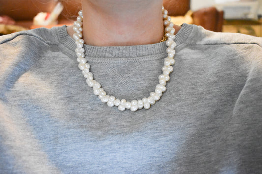 Vintage 14k Yellow Gold Conjoined Twin Pearl Necklace 18"