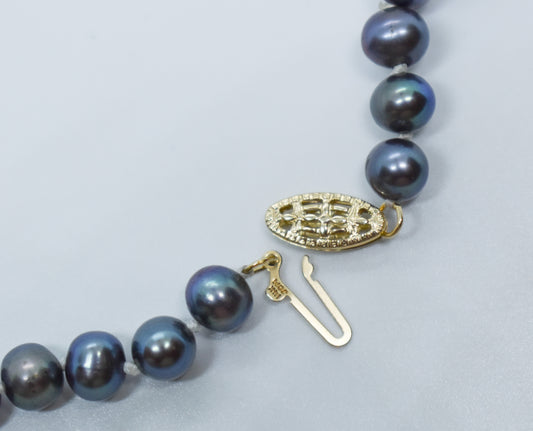 Vintage 14k Yellow Gold Black Pearl Necklace 18"