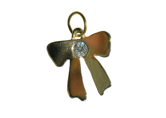 Handmade 14k Yellow Gold Bow Pendant with CZ