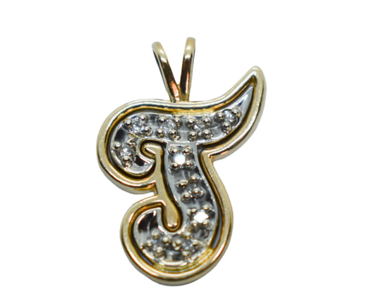 Vintage 14k Two-Tone Gold Diamond Letter T Pendant