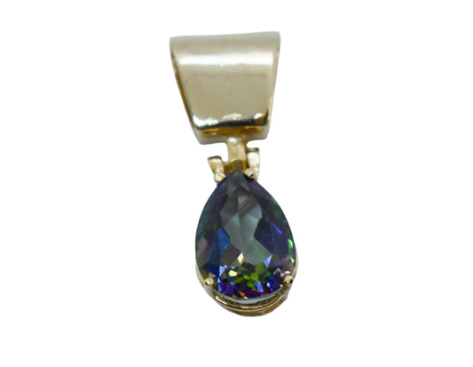 Vintage 14k Yellow Gold Synth. Mystic Fire Topaz Slider Pendant