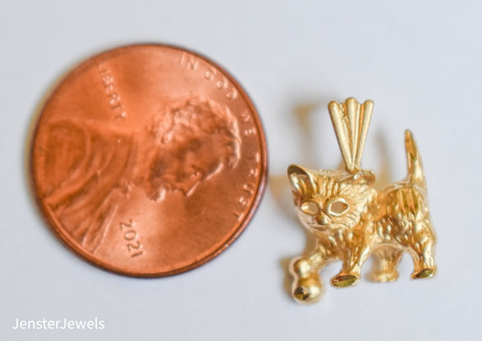 Vintage 14k Yellow Gold Michael Anthony Cat and Ball Pendant
