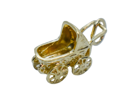 Vintage 14k Yellow Gold Baby Carriage Pendant