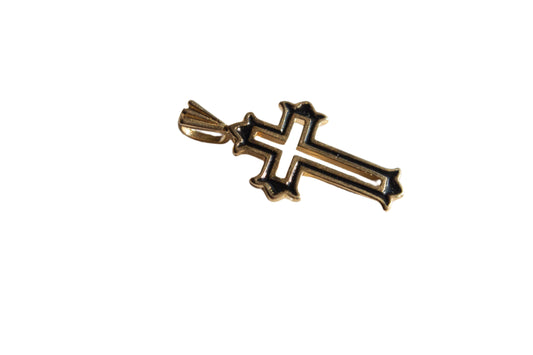 Vintage 14k yellow Gold Black Enamel Inlay Michael Anthony Cross Pendant