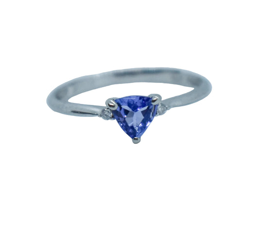 Vintage Platinum Trillion Tanzanite & Diamond Ring Size 7