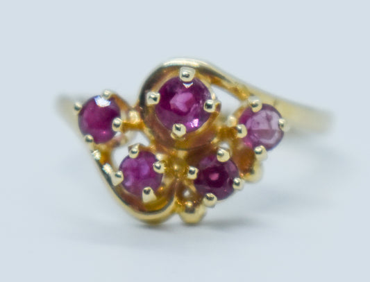 Vintage 14k Yellow Gold Ruby Flower Ring Size 5 3/4