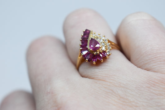 Vintage 14k Yellow Gold Ruby & Diamond Cluster Ring Size 6
