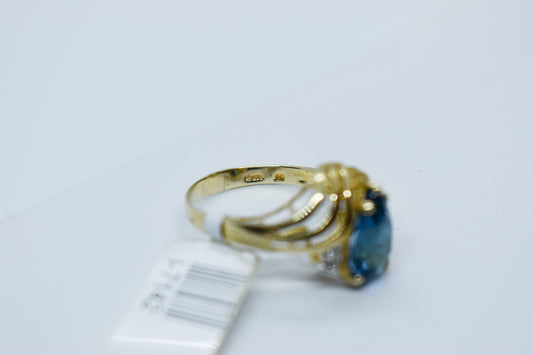 Vintage 14k Yellow Gold 2.5CTW Blue Topaz and Diamond Ring Size 7 1/2