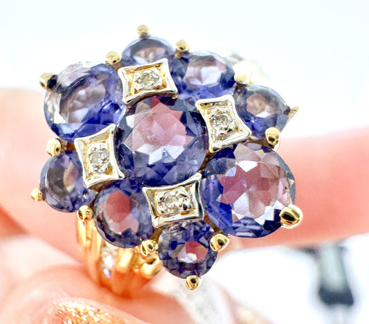 Vintage 14k Yellow Gold Iolite and Diamond Ring Size 7