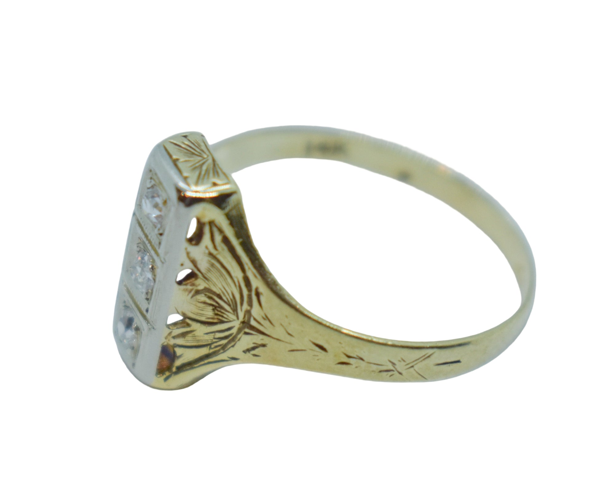 π Antique 14k Yellow Gold Diamond Engraved Dinner Ring