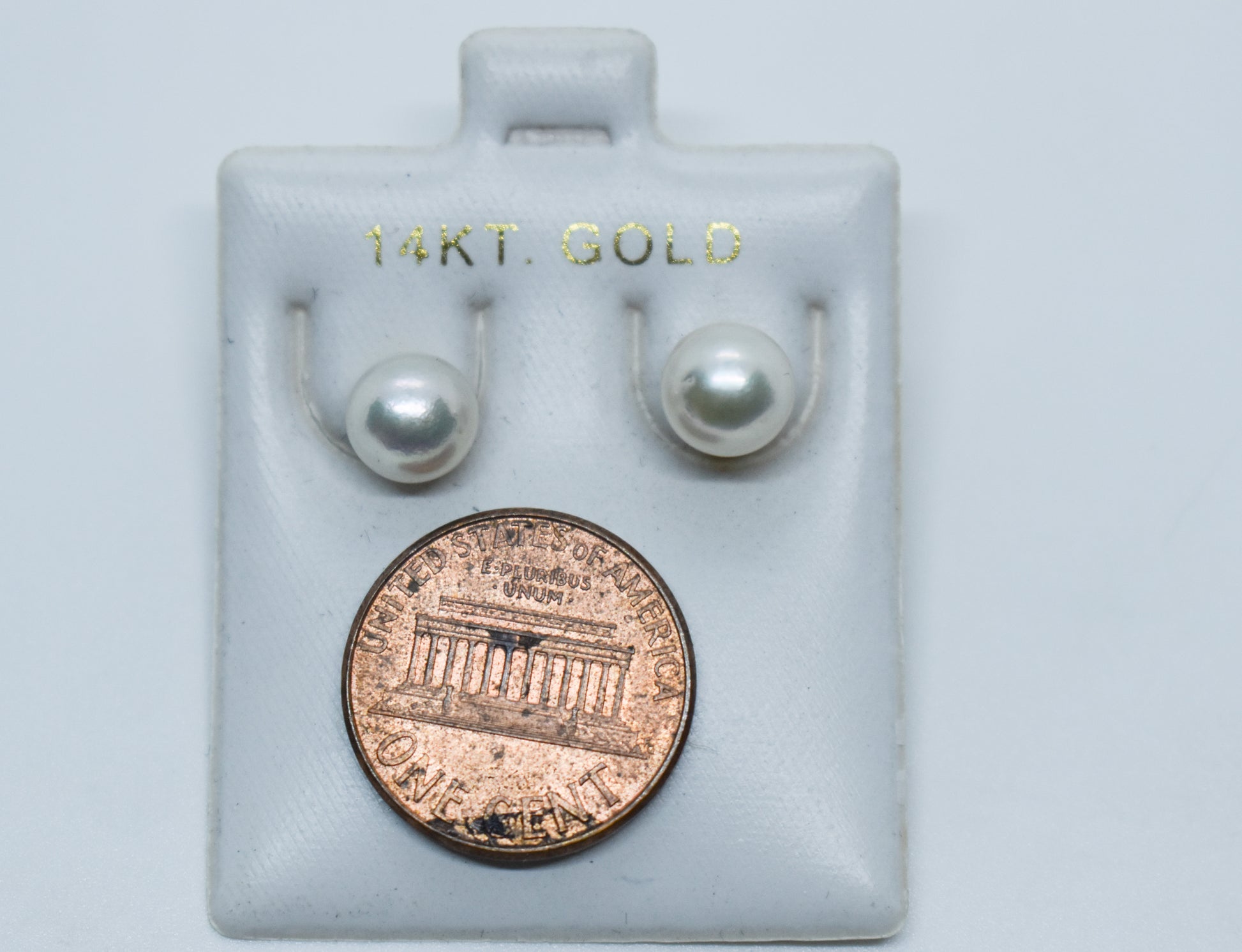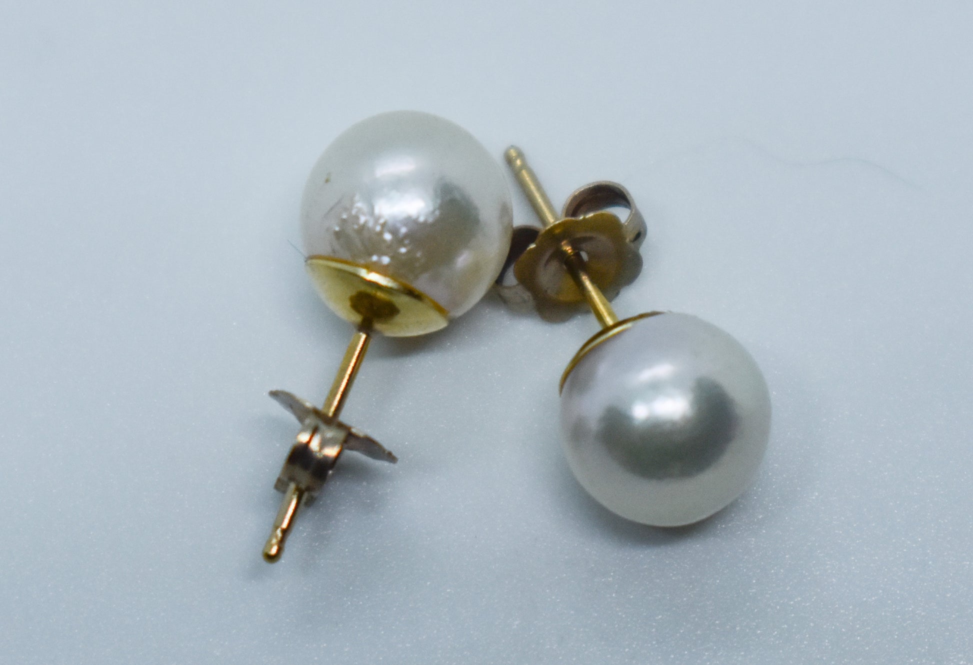 Vintage 14k Yellow Gold 7mm Pearl Stud Earrings