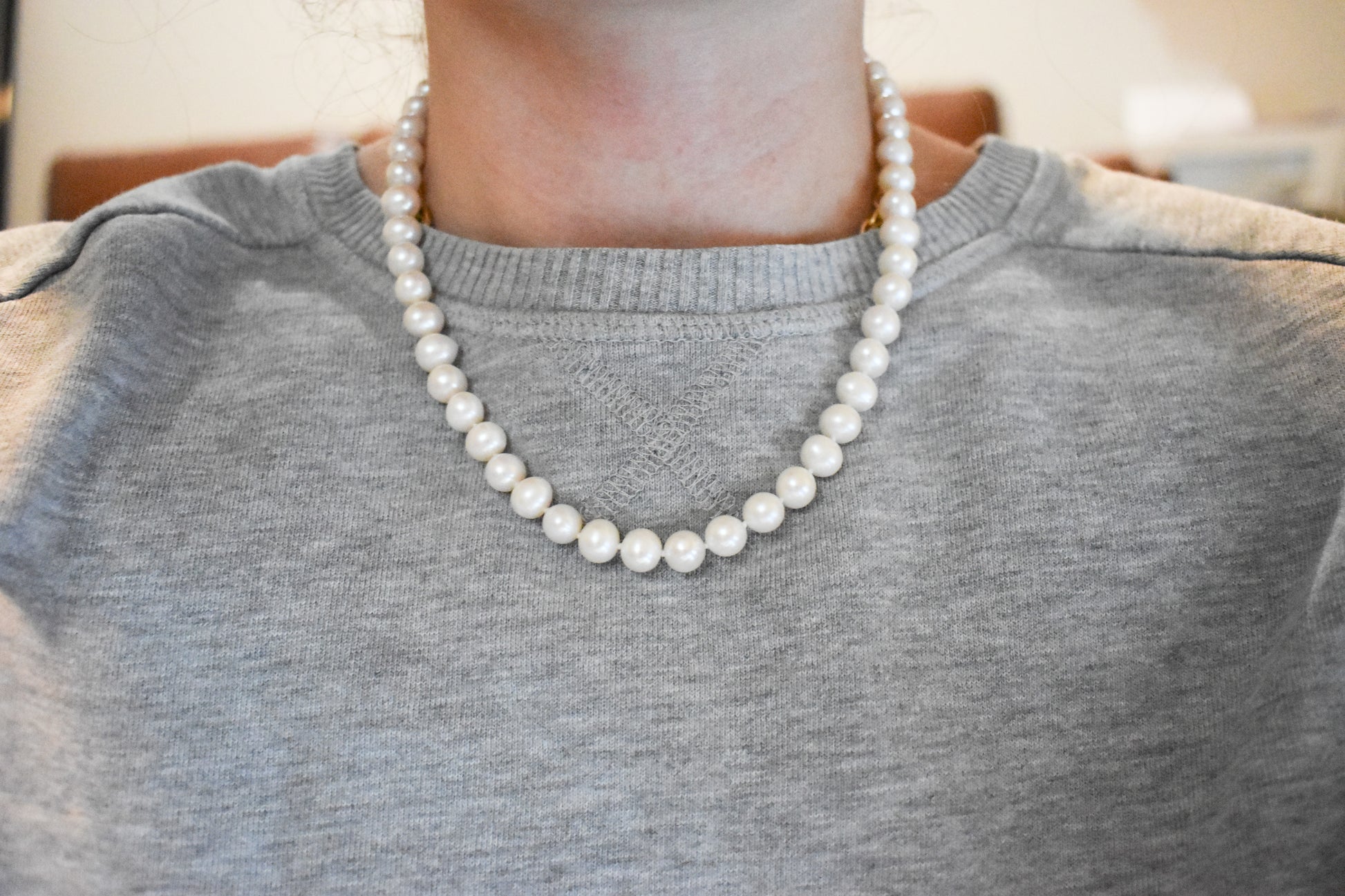 Elegant and timeless β this vintage strand of luminous cultured pearls is beautifully finished with a solid 14k gold clasp for a touch of classic luxury. β¨