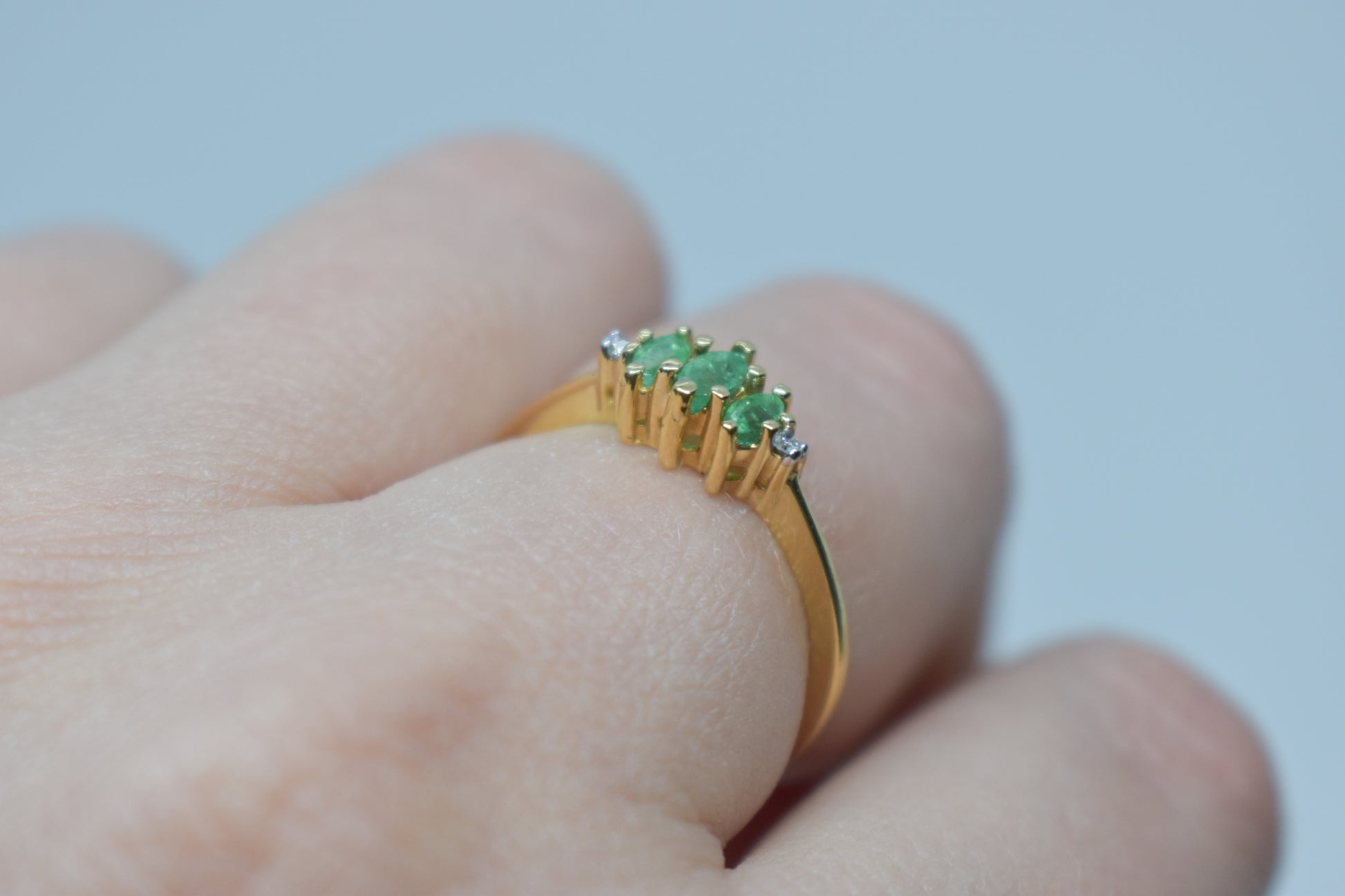 π Vintage 14k Yellow Gold Emerald & Diamond Ring