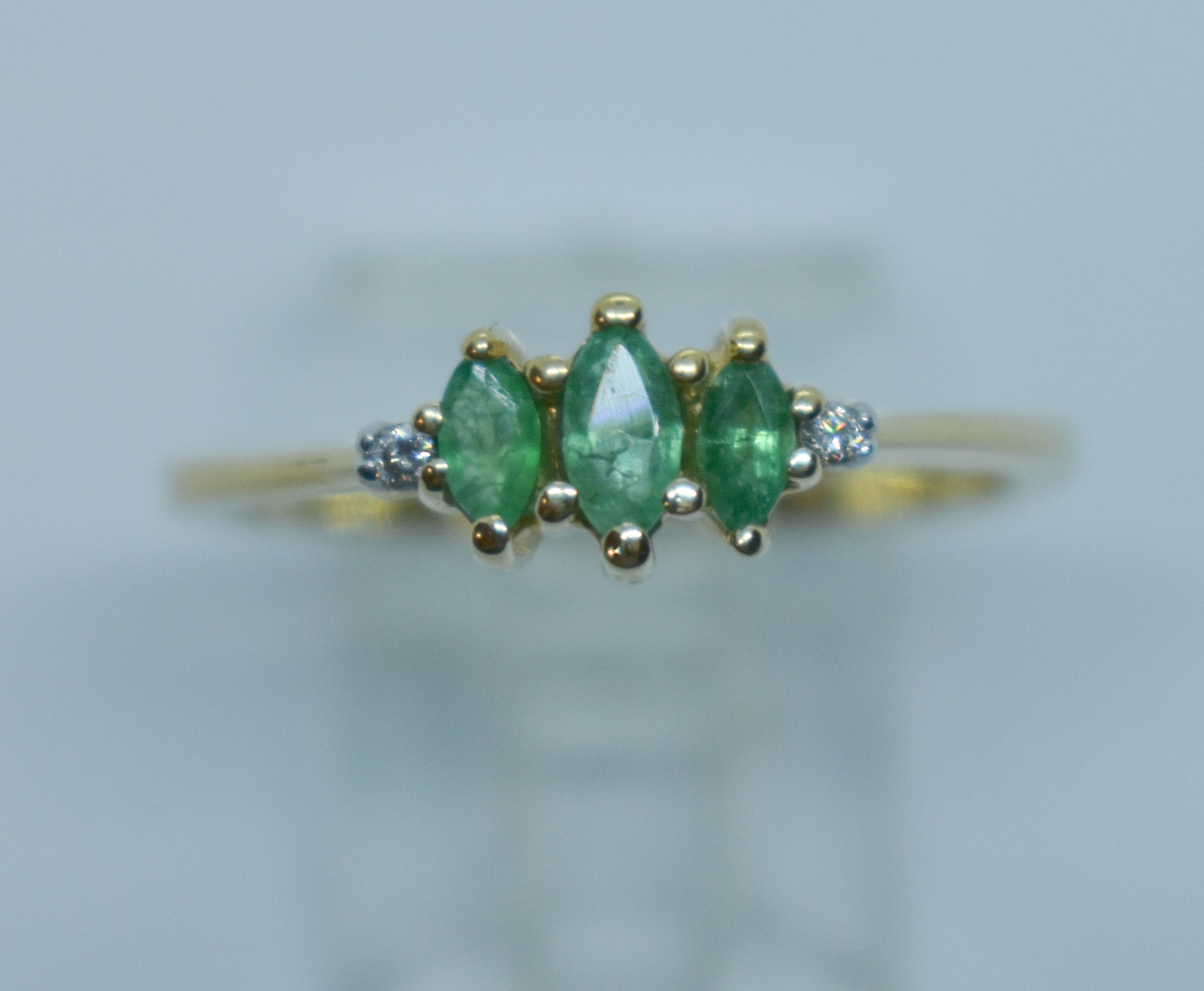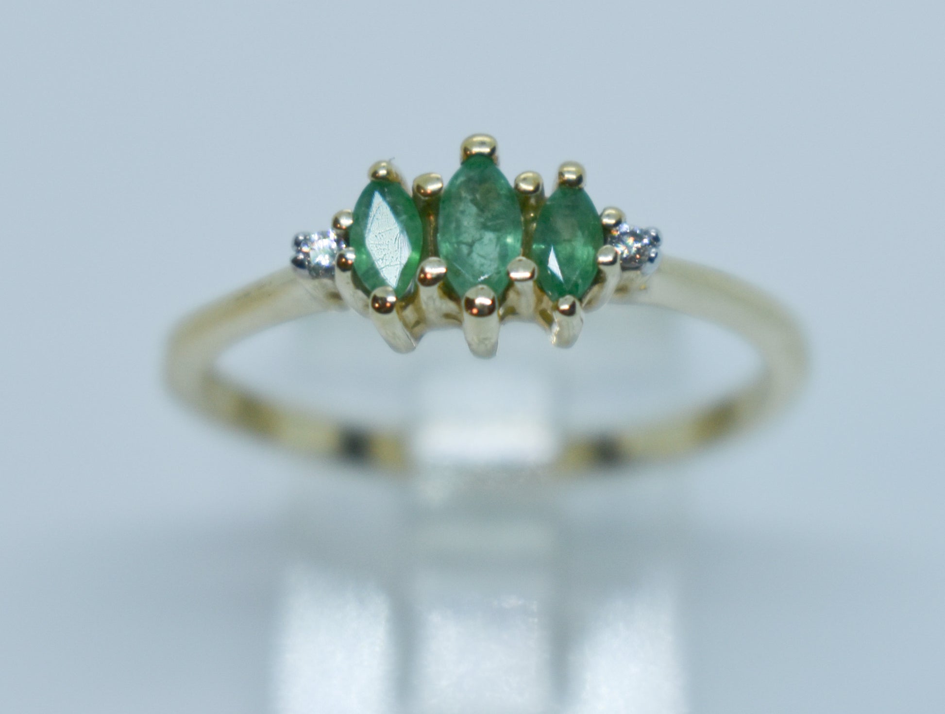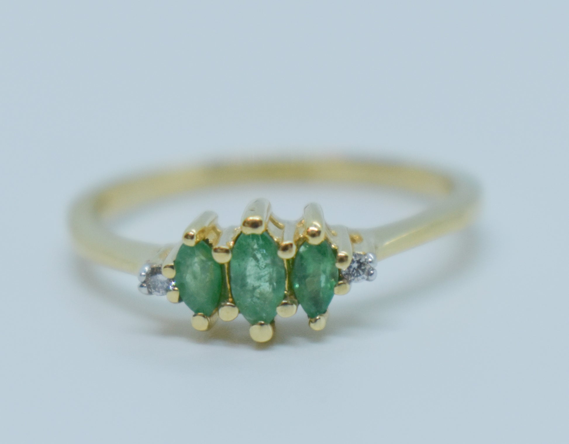 Elegant and timeless β this vintage 14k gold ring features three marquise emeralds accented by sparkling diamonds, creating a graceful balance of color and shine. β¨