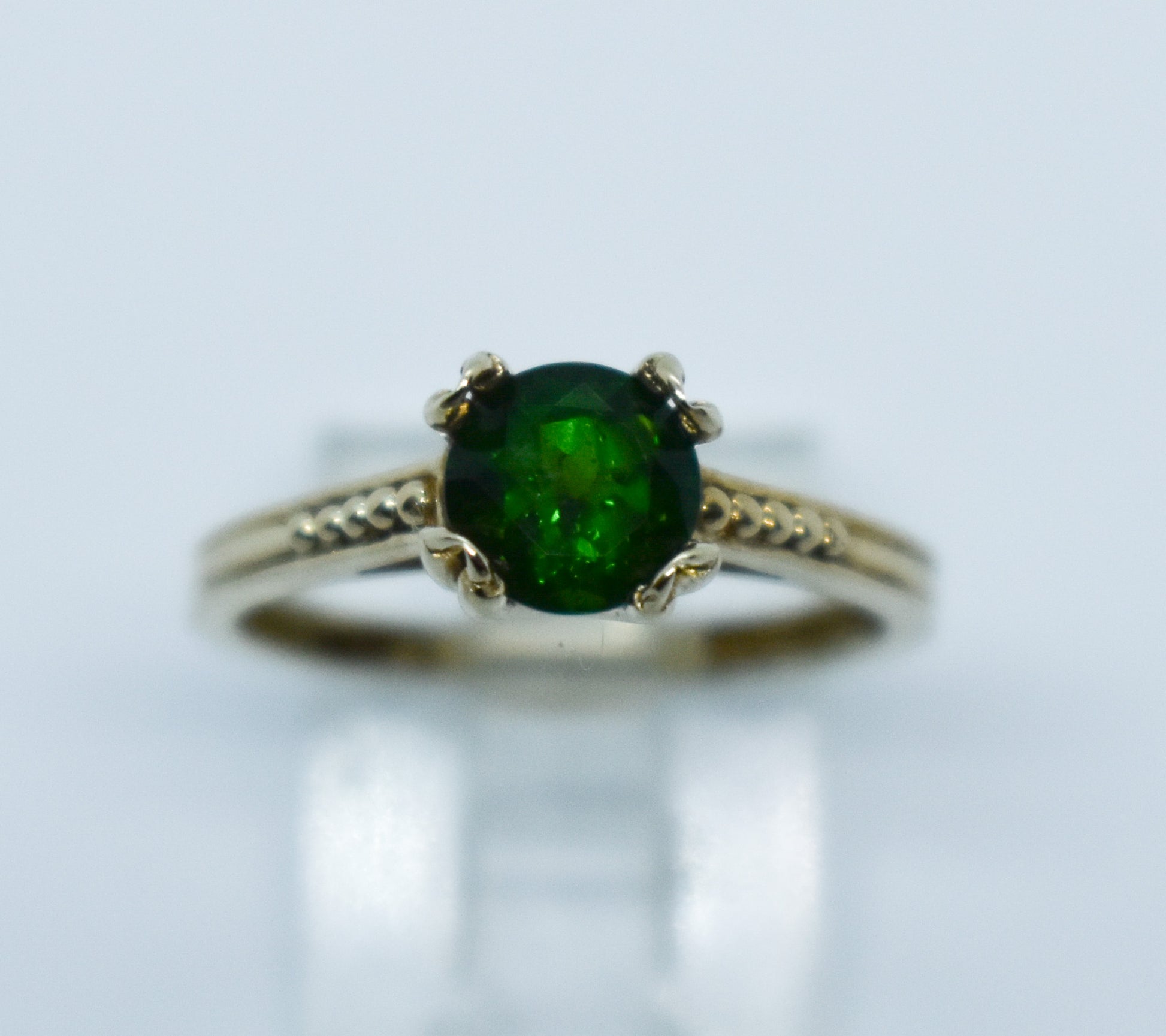 Vintage 14K Yellow Gold Green Russian Diopside Solitaire Ring