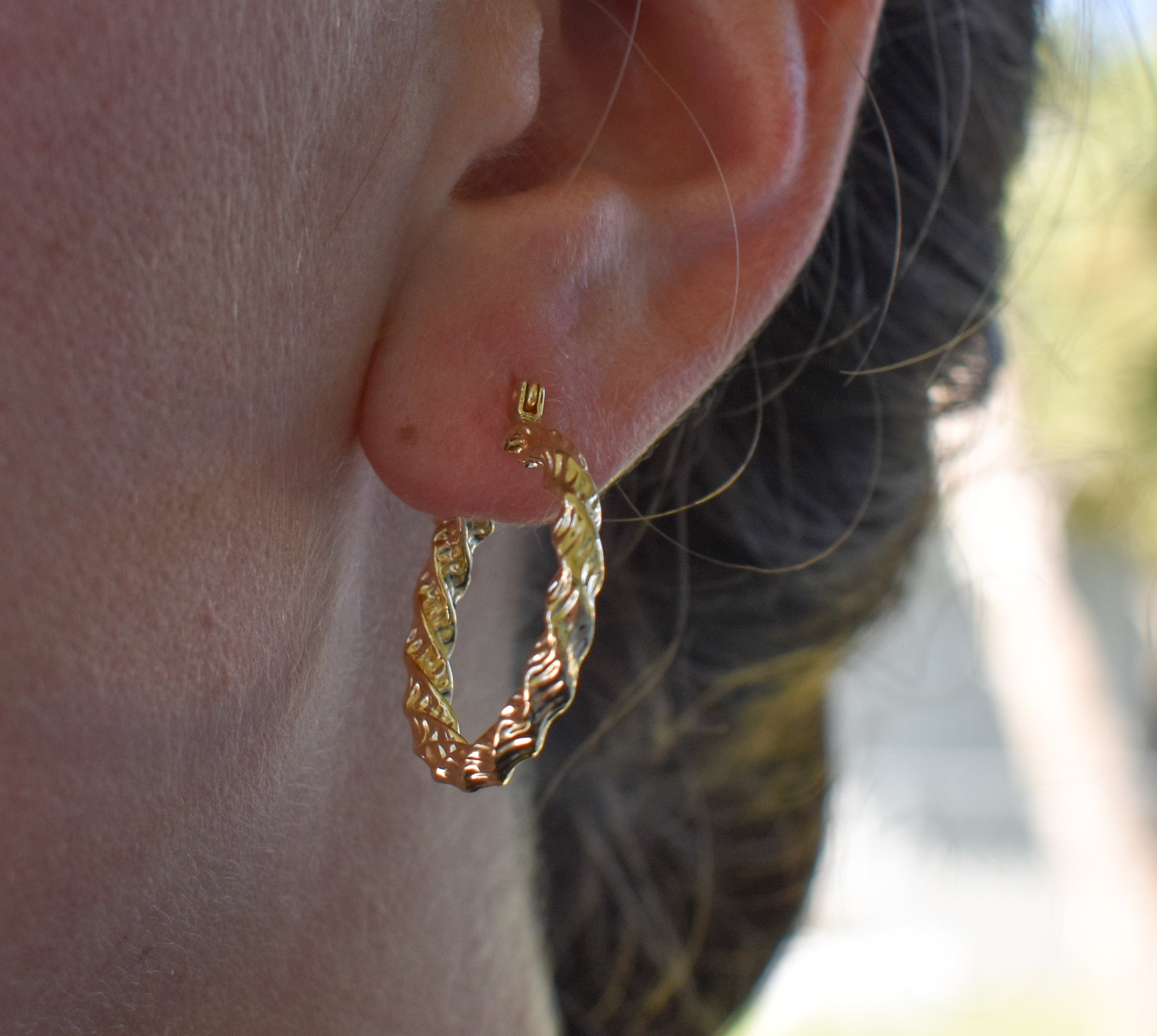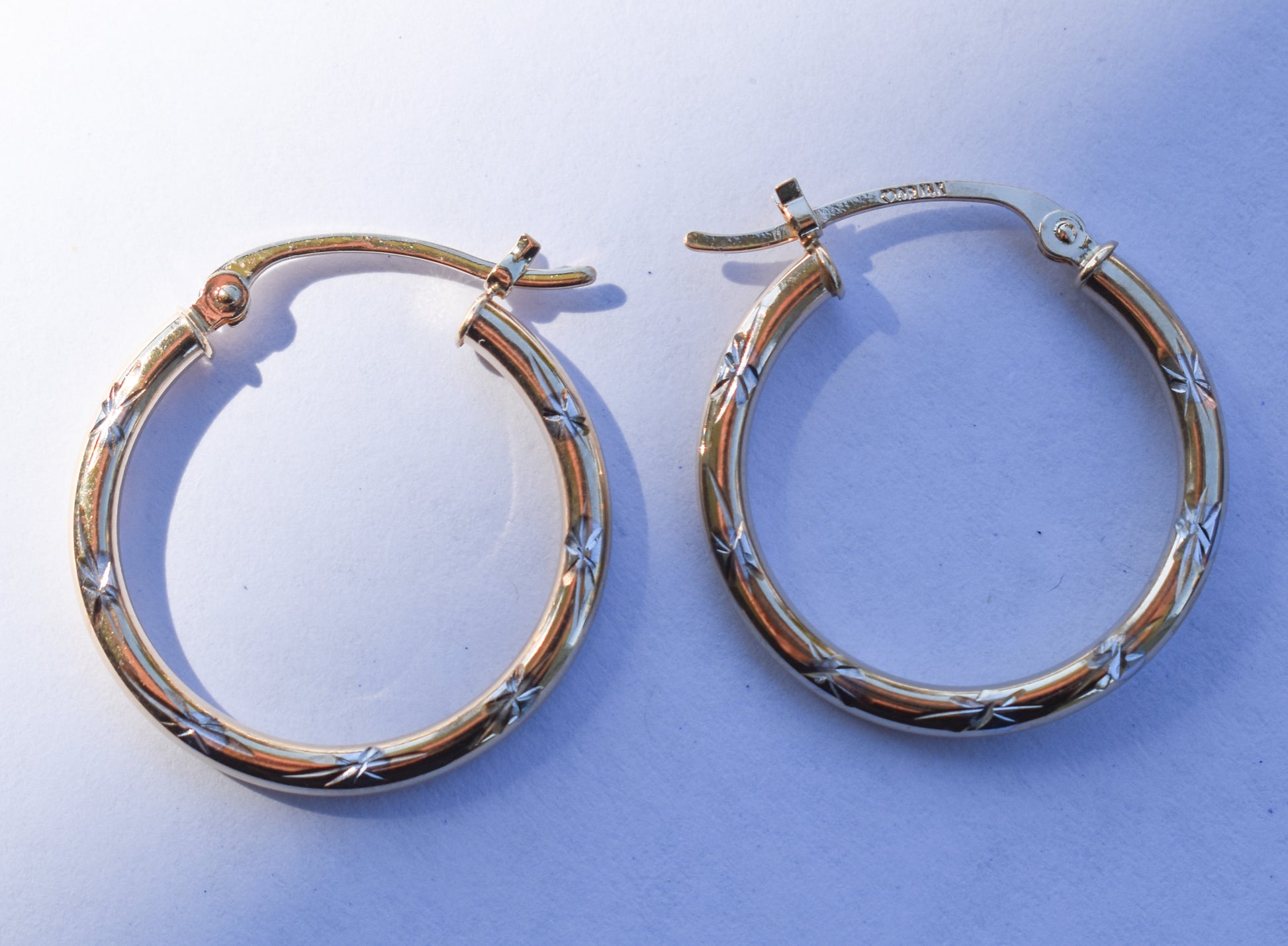 ✨ Vintage 14k Yellow Gold Diamond-Cut Hoop Earrings ✨