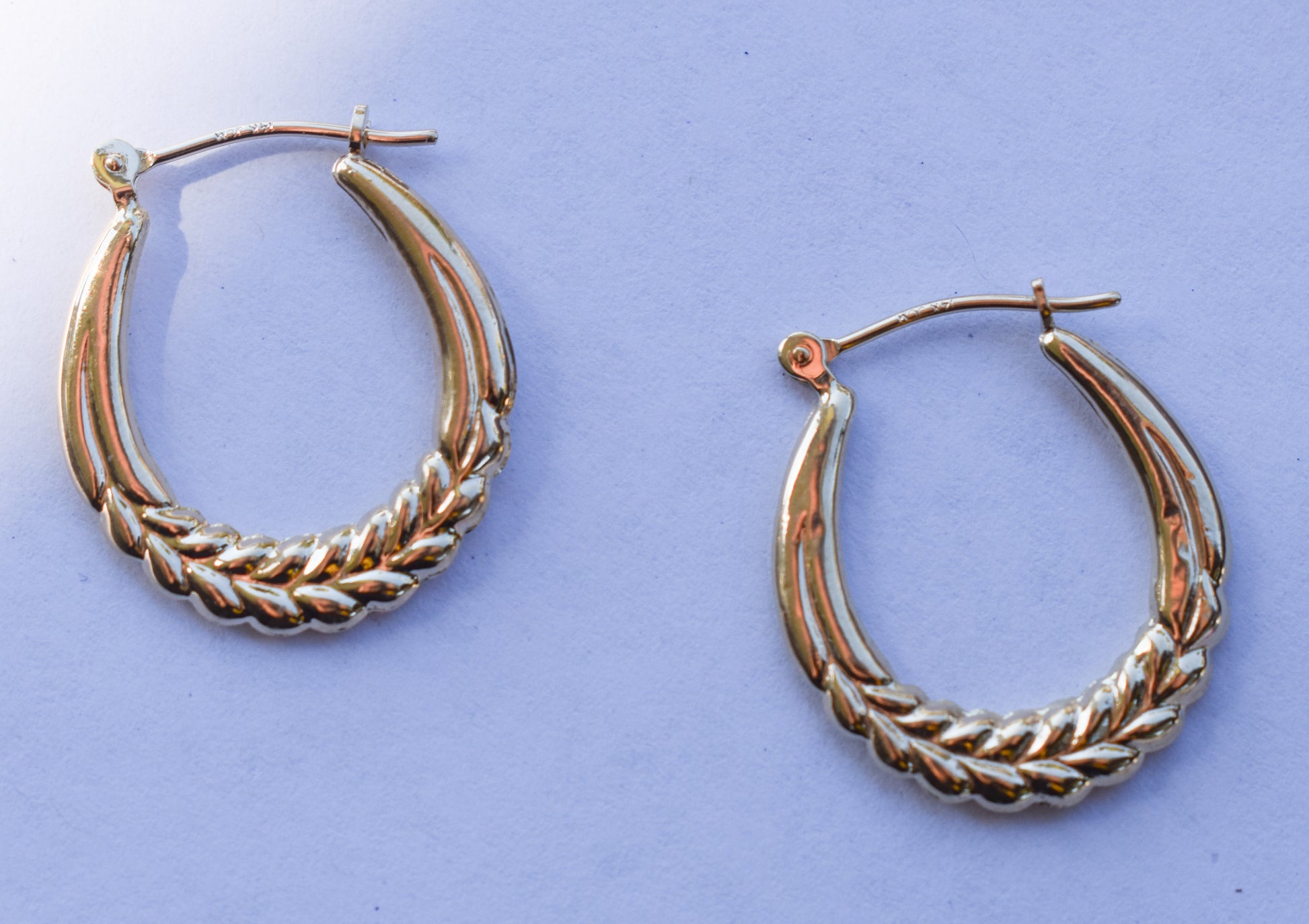 ✨ Vintage 14k Yellow Gold (Hollow) Wheat Hoop Earrings ✨