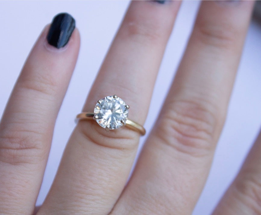 Vintage 14k Yellow Gold Large Cubic Zirconia Solitaire Ring Size 4 3/4