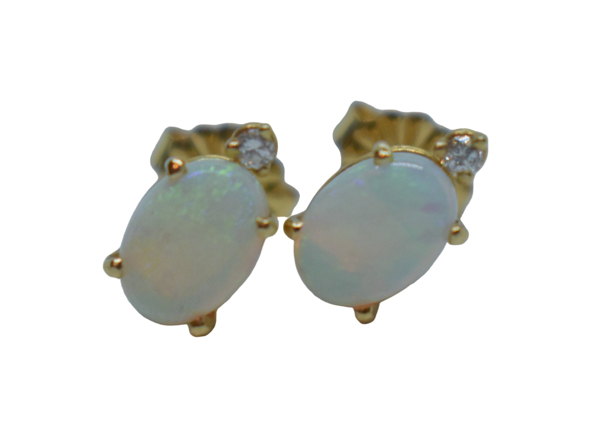 Vintage 14k Yellow Gold Opal & Diamond Stud Earrings