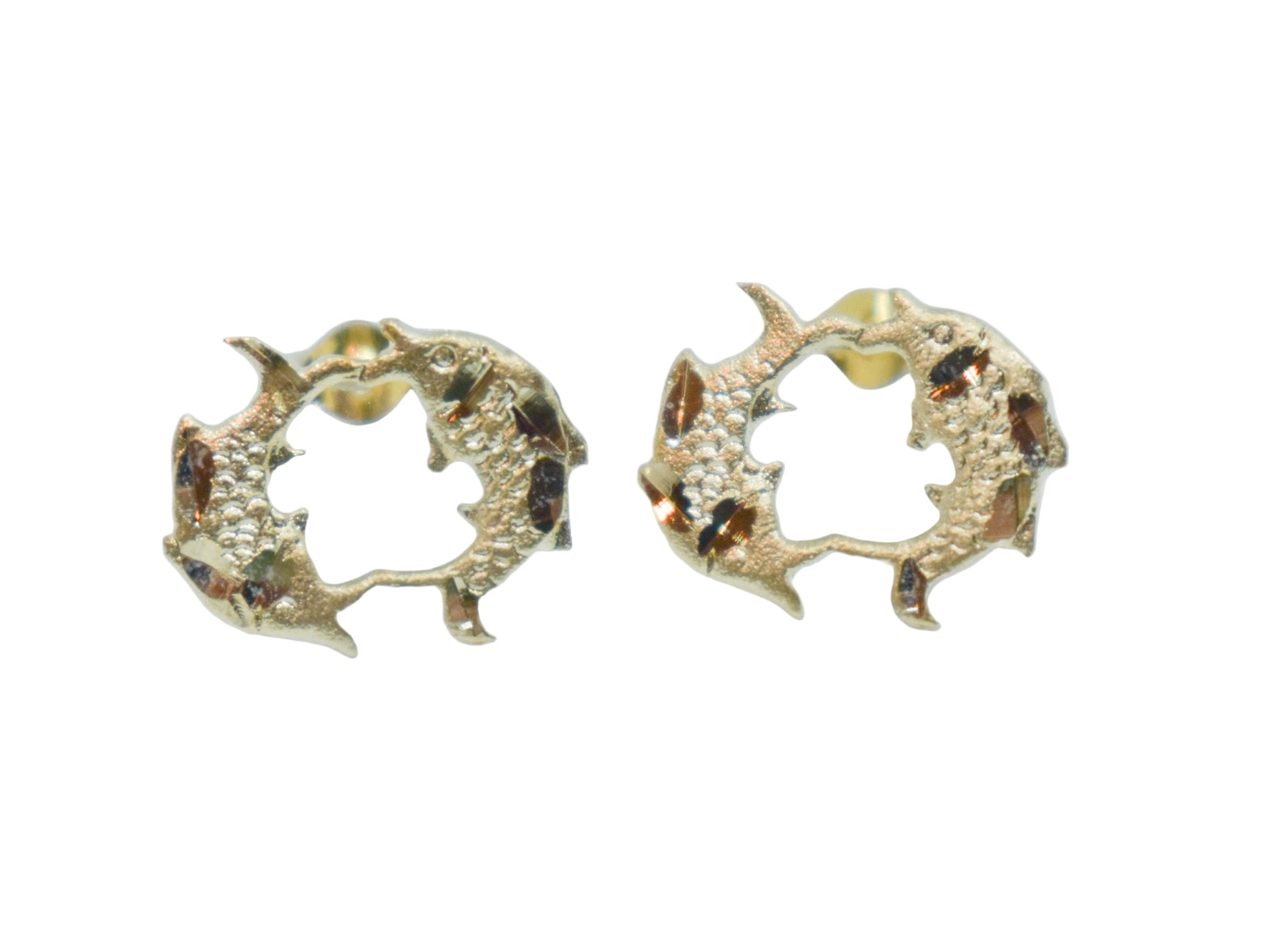 Vintage 14k Yellow Gold Pisces Zodiac Stud Earrings