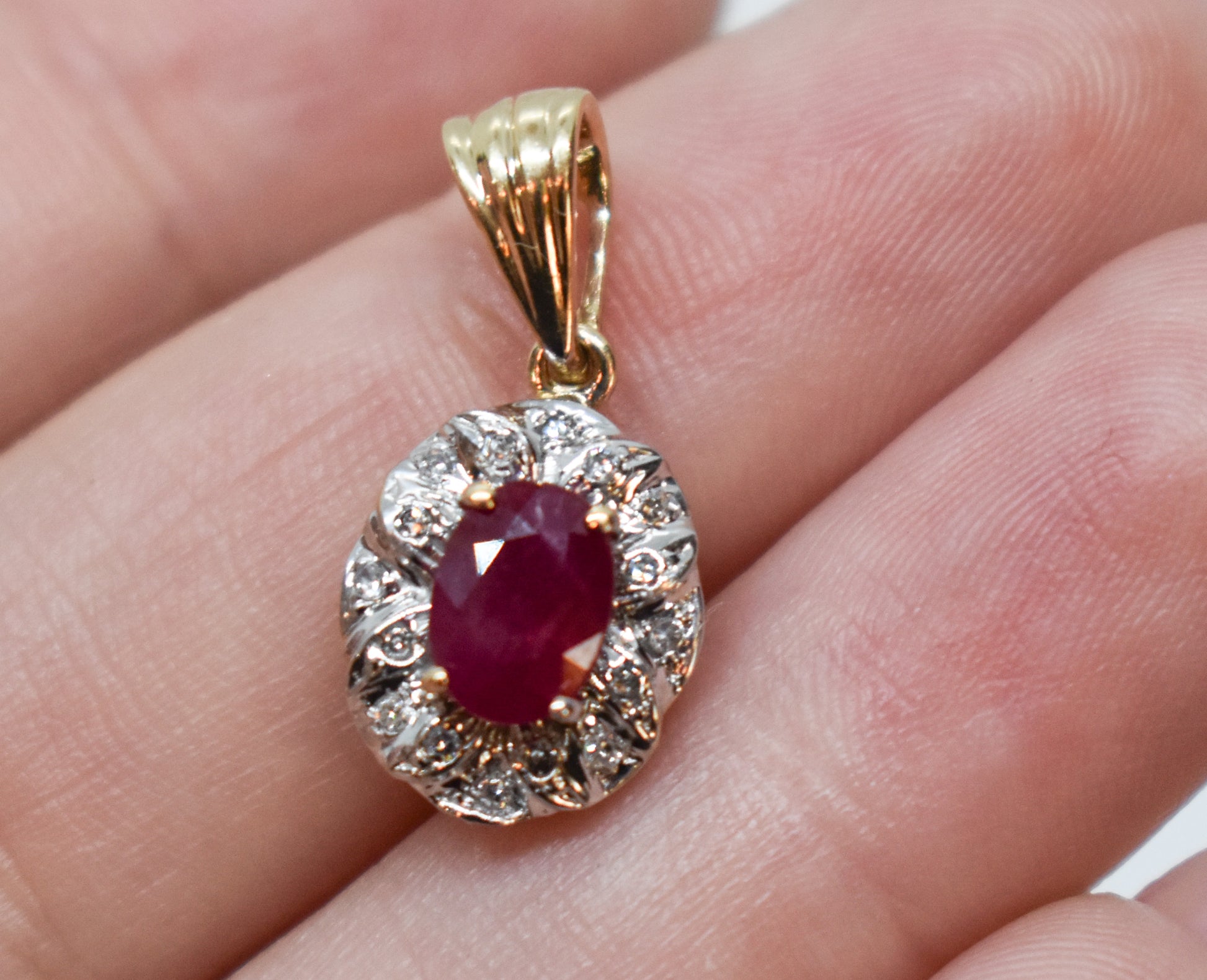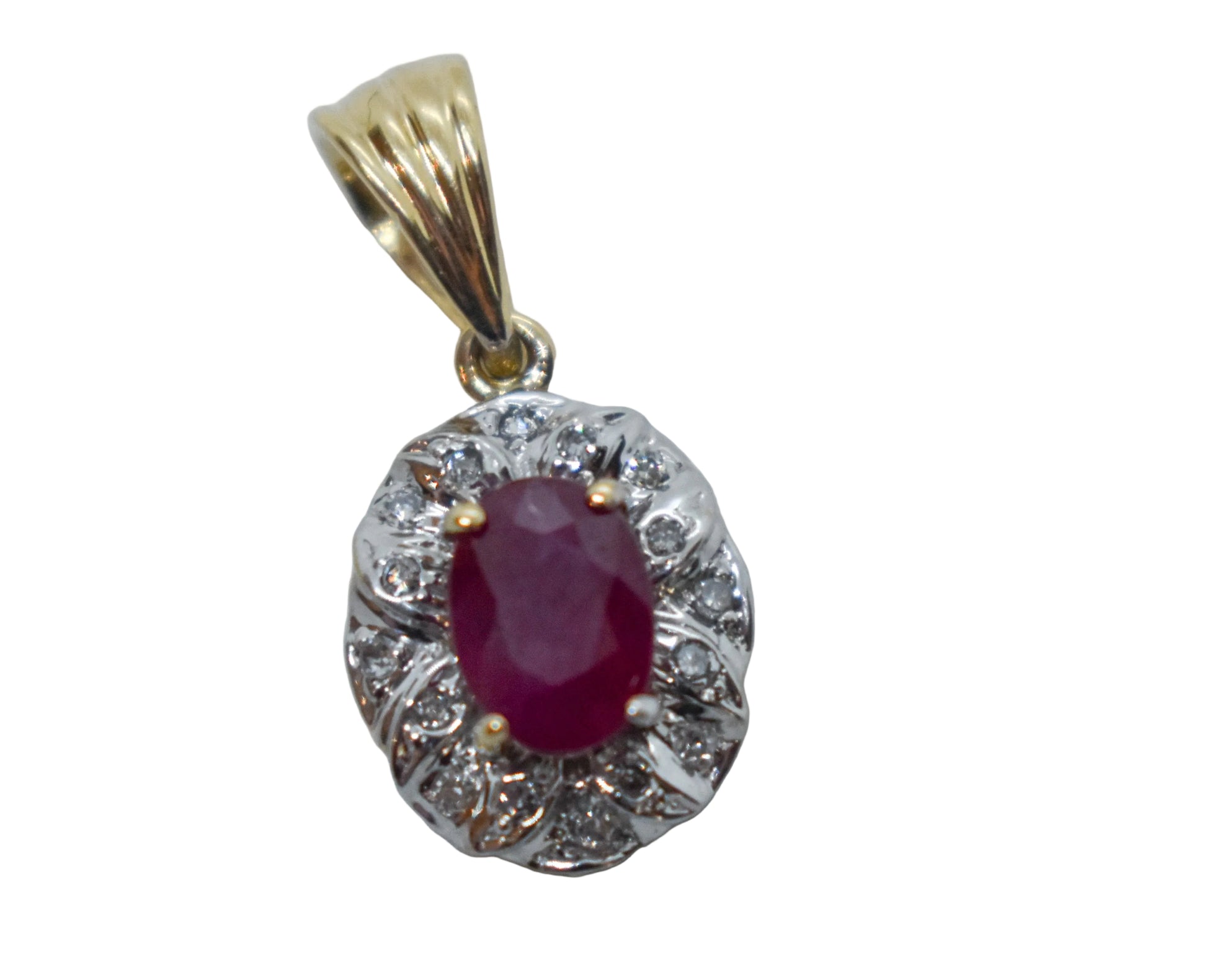 Vintage 14k Yellow Gold Ruby & Diamond Pendant
