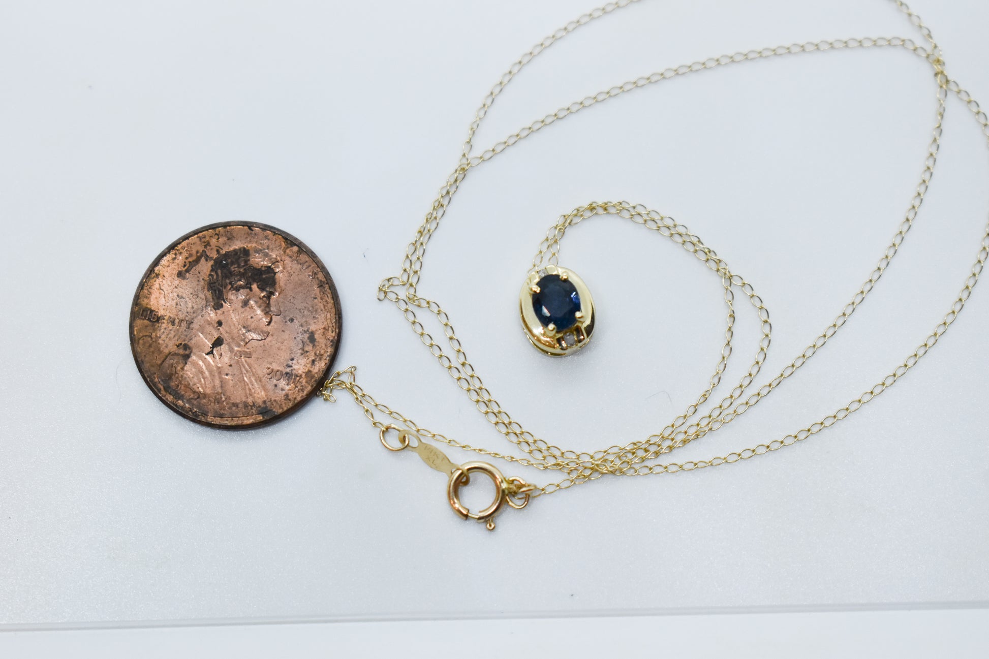 Vintage 14k Yellow Gold Sapphire and Diamond Pendant Necklace 18 1/2"