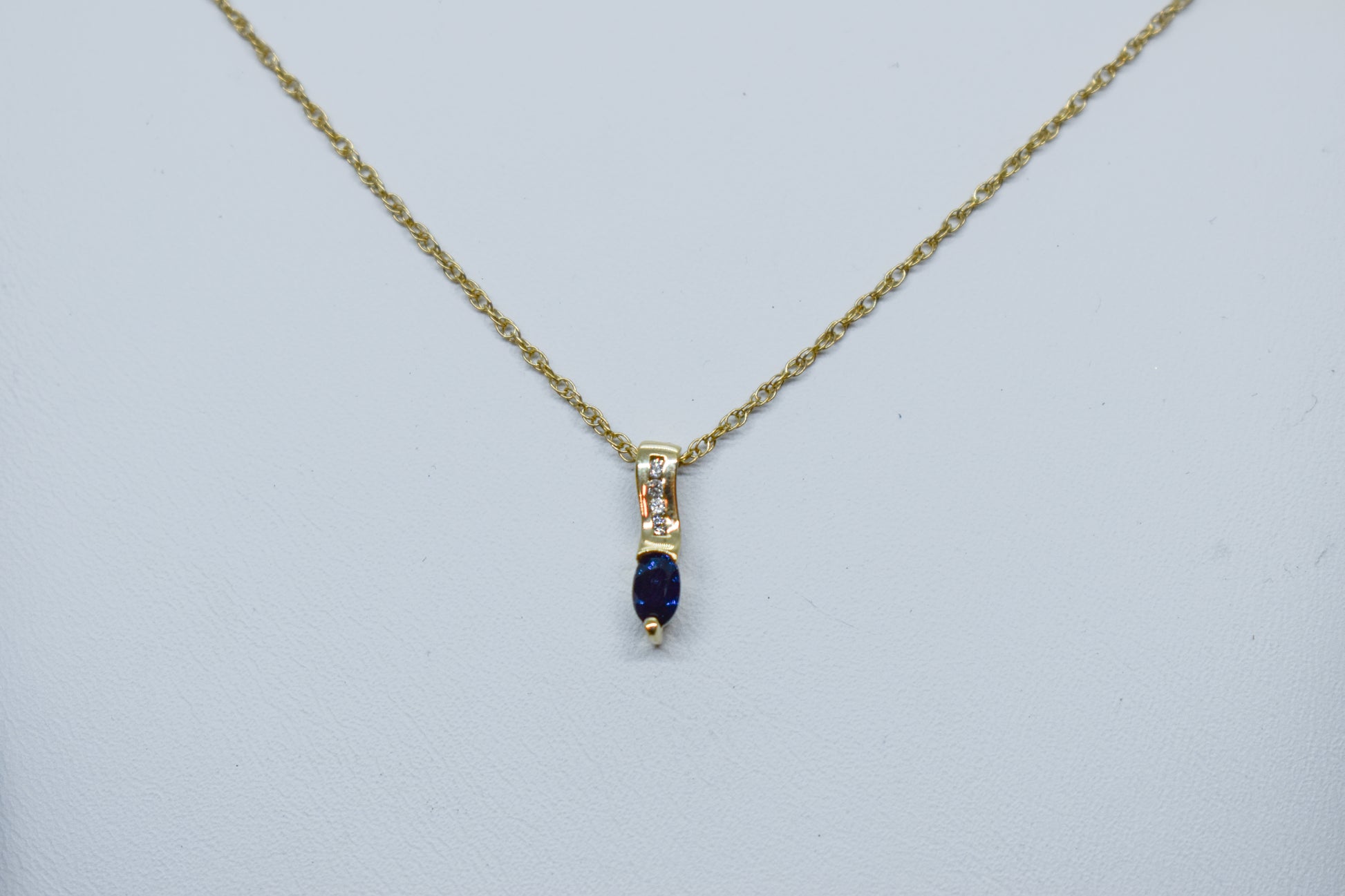 Vintage 14k Yellow Gold Sapphire and Diamond Pendant Necklace 18"