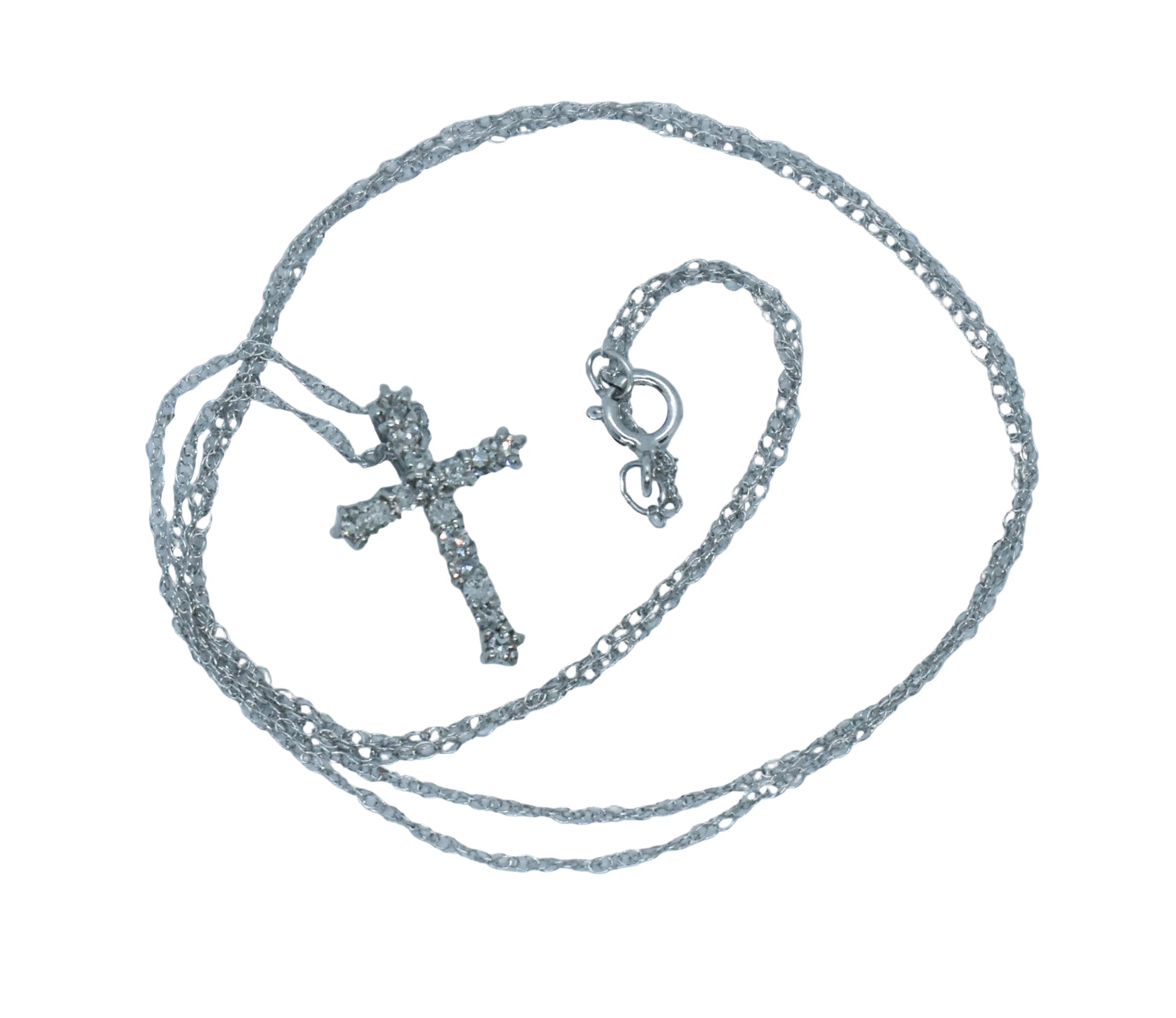 Vintage Platinum Diamond Cross Necklace .25 CTW 18"