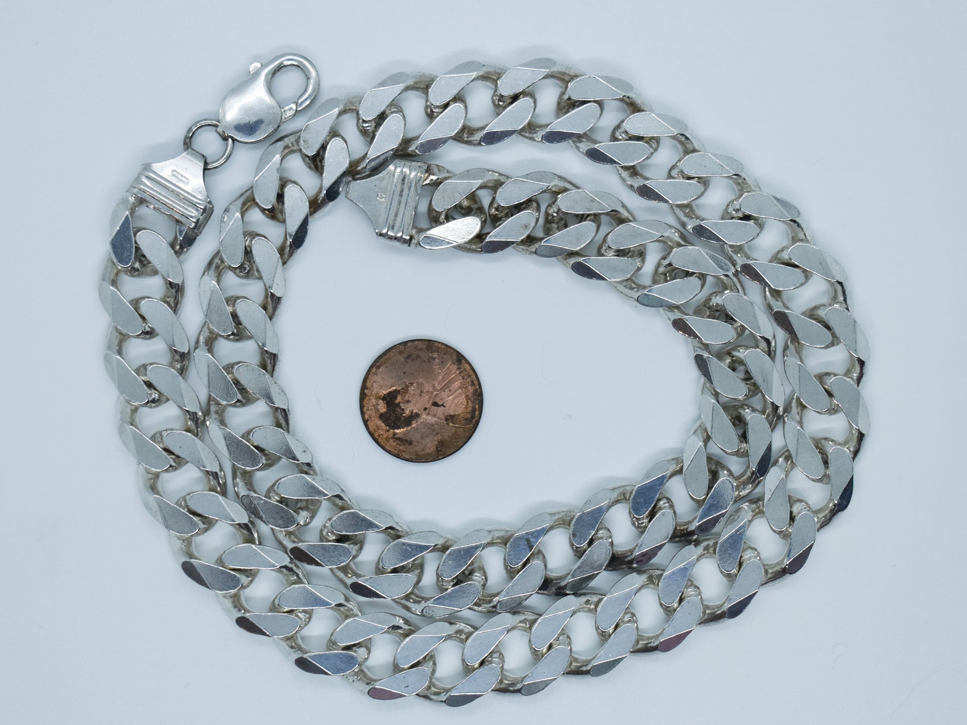 Vintage Sterling Silver Heavy Cuban Curb Link Chain Necklace 22"
