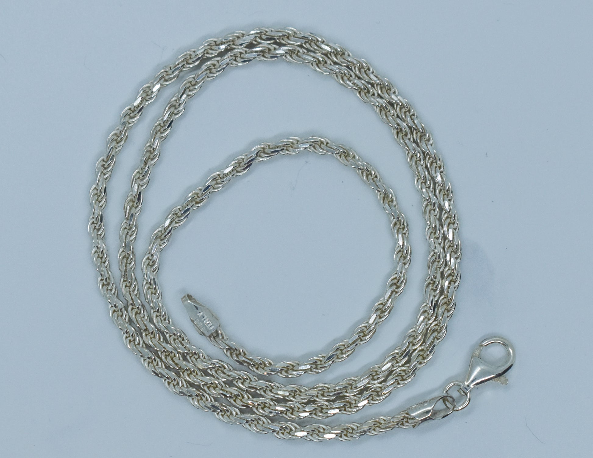 Vintage Sterling Silver Rope Chain Necklace 20"